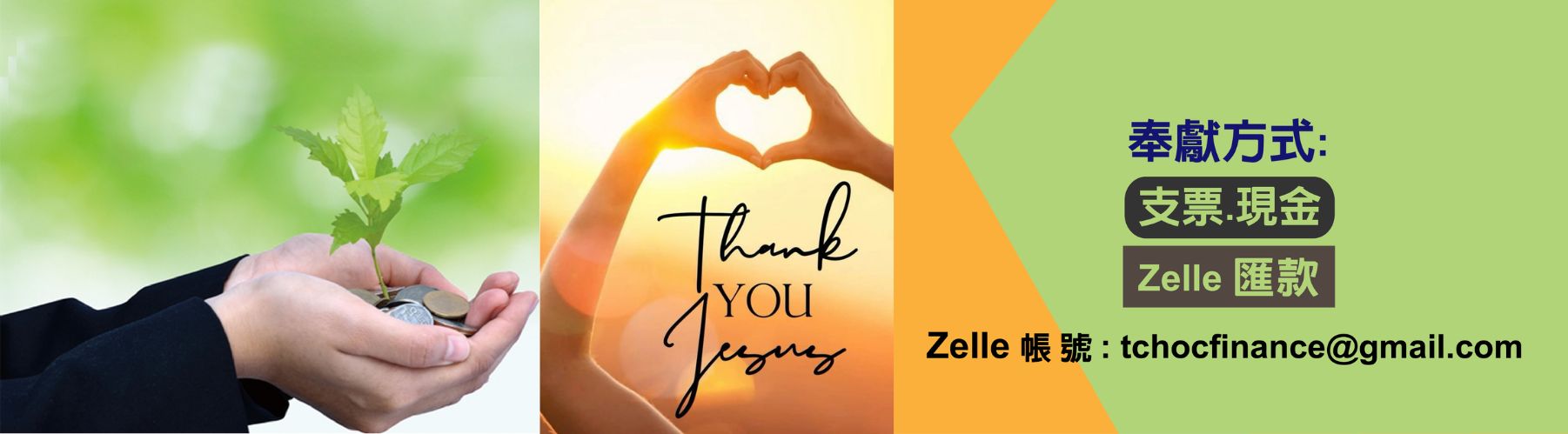 奉獻支持本教會方式有下列:現金、支票及Zelle匯款三種方式